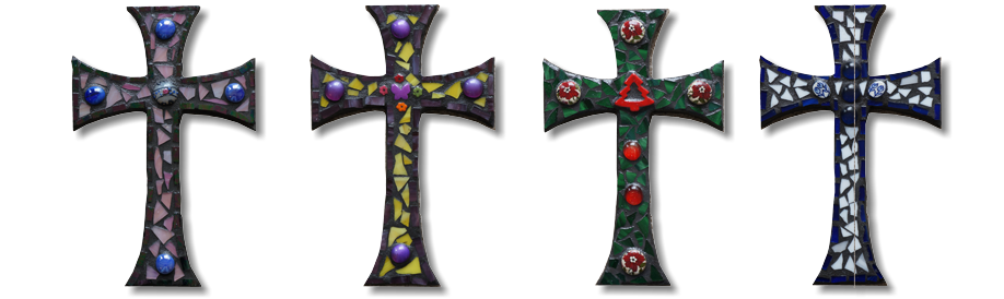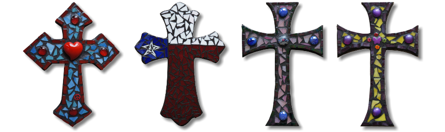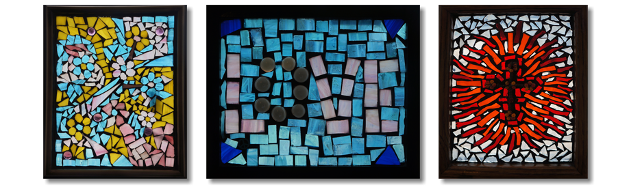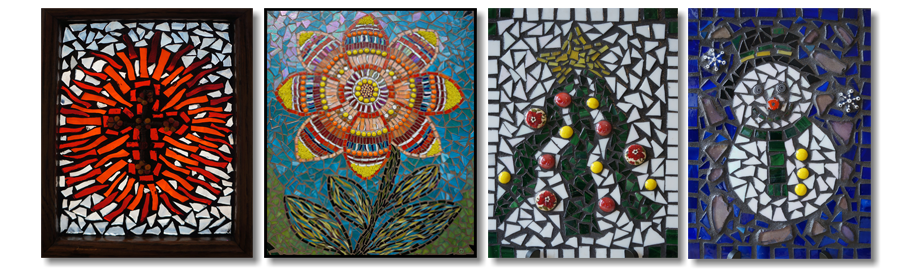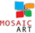 Mosaic: a composition made from bits of tile, glass, or other broken bits. Mosaics date back centuries and have been the favorites of the Romans and the Greeks. Modern mosaics may be made of anything, in any style.