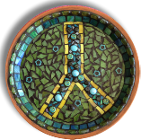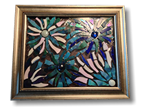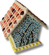 Mosaic: a composition made from bits of tile, glass, or other broken bits. Mosaics date back centuries and have been the favorites of the Romans and the Greeks. Italian churches are a great place to see Byzantine or glass mosaics. Modern mosaics may be made of anything, in any style.